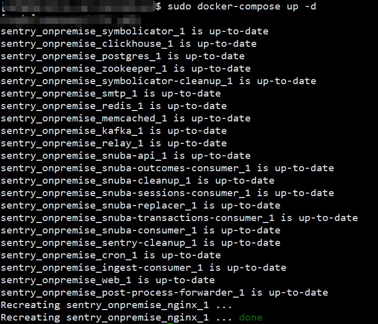 安装完毕后,通过docker-compose启用sentry: