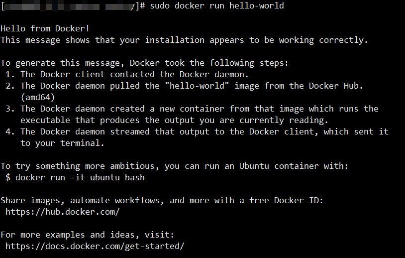 sudo docker run hello-world # 拉取hello-world 镜像