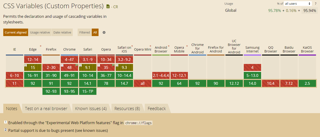 CSS3中增加了变量函数var, 当然这些变量在less/sass等css预编译语言中早有实现,CSS标准也已经支持,并且也有着不错的兼容性: