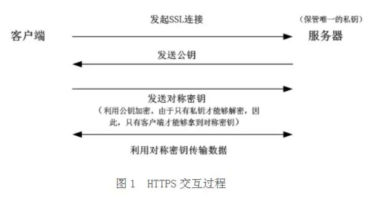 http是明文传输,很容易被第三方“窃听”与“篡改”,所以要进行加密传输。最常见的算法就是对称加密,同一个密钥用来加密与解密,但这样密钥在传输过程很容易被“窃取”,所以加入了非对称加密算法:公钥与私钥(公钥加密的数据只有私钥才能解开,反义亦然),非对称加密虽然加密度高,但算法相对复杂,加密解密过程比较耗时,所以建立真正的连接之前会先进行三次握手,握手成功后就开始利用对称加密进行数据传输,流程如下:(服务端保存着唯一的私钥):