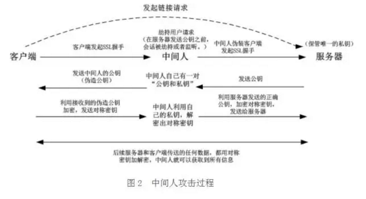 等等,这样就完美了吗?中间人模式可以完美避开(Fiddler/Charles的代理模式),中间人也有着自己的公钥与私钥,在客户端与服务端交换过程中做手脚:
