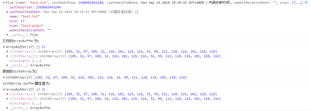 在本文第二部分涉及到的二进制数据,均为File API得到的,实际上我们读取文件后,通过内置的reader.readAsArrayBuffer方法可以轻易将文件转化为ArrayBuffer, 然后可以在此基础上做其他二进制操作。